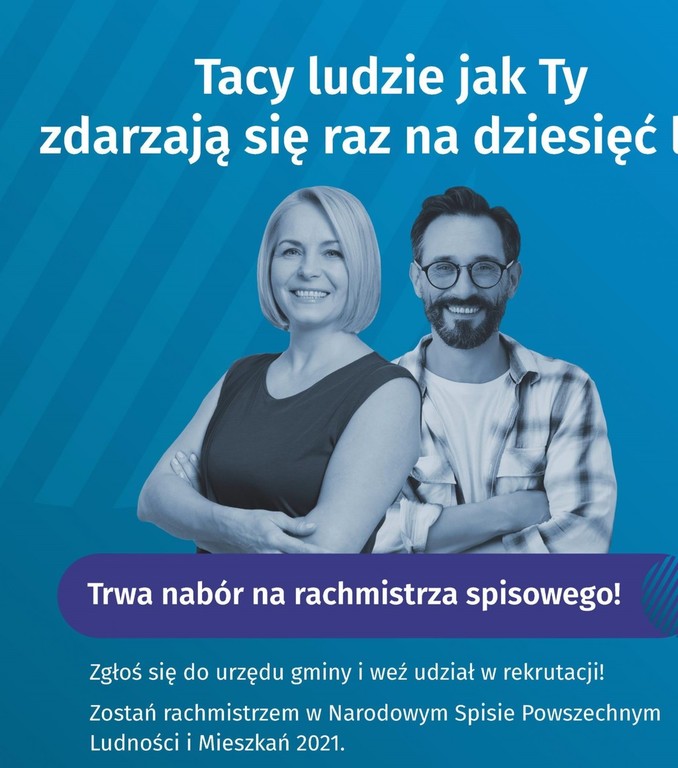 Grzegorz Woźniak – Gminny Komisarz Spisowy w Wiśniewie ogłasza otwarty i konkurencyjny nabór kandydatów na rachmistrzów spisowych wykonujących czynności w ramach prac spisowych, związanych z przeprowadzeniem na terytorium Rzeczpospolitej Polskiej w 2021 r. spisu powszechnego NSP 2021.